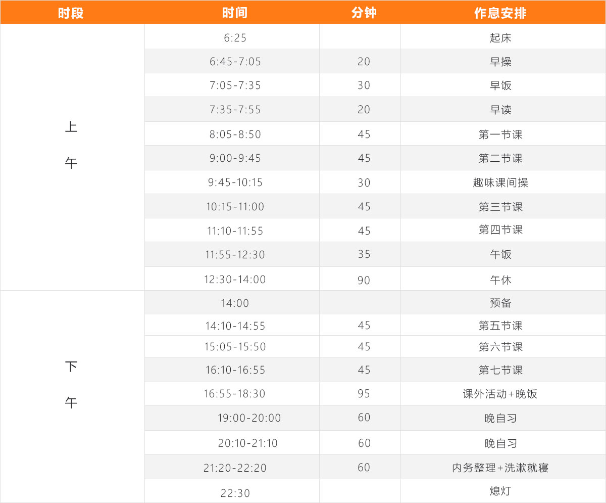 2022年宿遷傳智互聯網中等職業(yè)技術學校作息時間表具體如下: